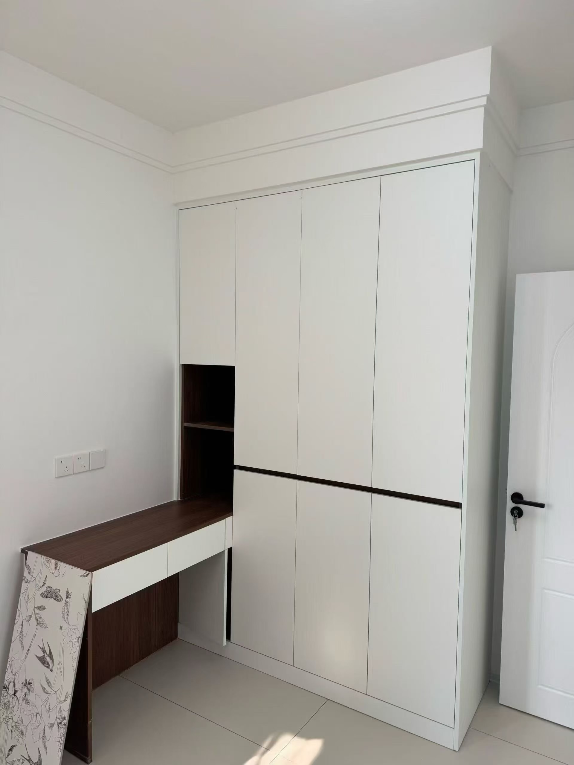完工分享80平2房,现代奶油风硬装加柜子6万多落地